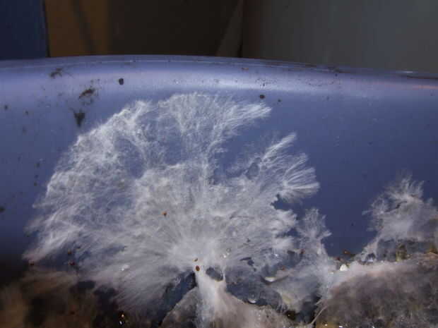 A menos que seas muy afortunado probablemente terminarás teniendo algunas tazas desarrollar manchas de moho verde. Es una frustración común de crecimiento de hongos. Sobre todo intenta obtener su micelio para competir con el molde porque usted nunca será capaz de evitar completamente si no tienes una habitación limpia. En caso de manchas de moho puede intentar retrasar llenando una botella de spray con agua oxigenada y dar el molde algunos aerosoles. Micelio es realmente muy tolerante de peróxido por lo que hace una buena opción para mantener las cosas limpias. Ser cuidado porque basado en la concentración del peróxido puede quemar la piel.