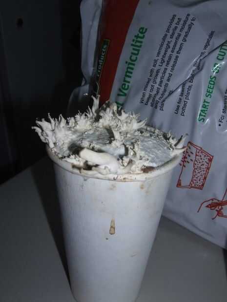 A continuación puede ver fotos de algunas tazas de setas a partir de frutas. Voy a publicar más fotografías como consiguen más grandes pero se puede ver cómo se va a trabajar. Como nota final diré tazas de café parecen funcionar bien como contenedores pero he probado otros muchos materiales sobre todo buenos resultados. Por un rato yo estaba llena de todo en mi casa que no estaba clavado seta spawn. Envases de plastico, frascos para conservas, envases de alimento viejo, lo que sea. Así tenemos diversión y experimento para ver lo que funciona mejor para usted. Puedes ver algunas fotos de otros envases que he probado a continuación.