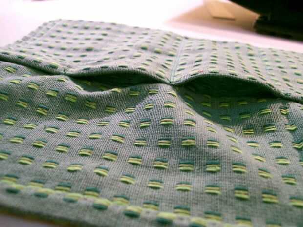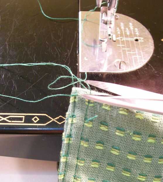 "cosa doble" por el medio del borde dobladillado de la toalla a su redil. Atar los extremos y recorte el exceso de hilo. Repetir la