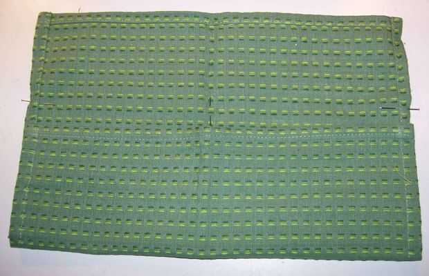 "cosa doble" del borde dobladillado a su doblez dos veces a cada lado de la línea media que sólo cosido. Esto debería hacer seis compartimentos.