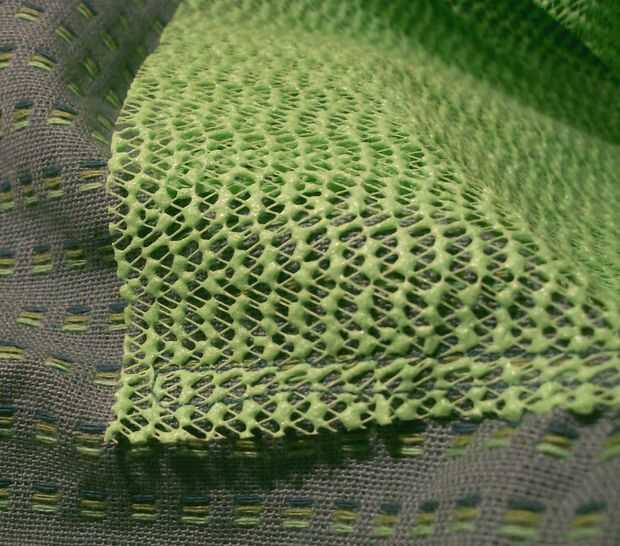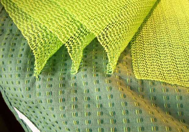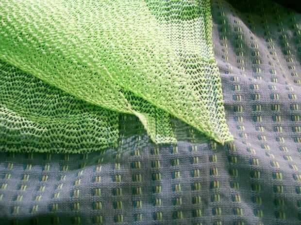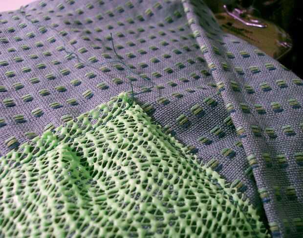 Repita este proceso una última vez con una tercera pieza del revestimiento de la repisa. Ahora debe tener tres piezas de revestimiento estante cosida aproximadamente una pulgada de uno al otro en sus extremos inferiores y flujo libre de los otros tres extremos.
