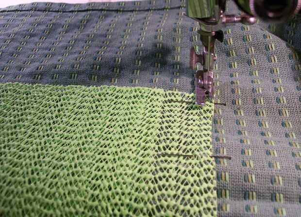 Con uno del cocina toallas pasador trazador de líneas del estante de la pieza del mismo tamaño una pulgada desde la parte inferior de la primera pieza de revestimiento útil justo en la parte inferior de la funda, a través de todo el camino. Doble-coser, atar, recorte el exceso de hilo.