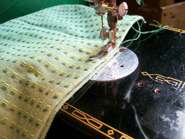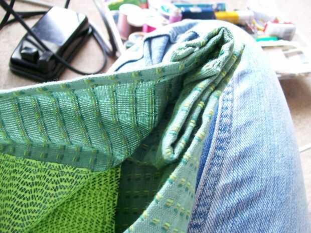 Doblar las toallas en la mitad hacia atrás (con el interior que contiene repisas hacia afuera), luego doblar cada lado para hacer una especie de acordeón doble en forma de M. Lados del perno de toallas juntas y a lo largo de este doblan zona para evitar que se mueva. Las toallas si no se reúnen uniformemente en los extremos superiores, dejando alrededor de tres pulgadas no cubiertos por lo que puede ser doblado encima como una libro de abertura de la bolsa. Coser juntos los bordes de las toallas. NO COSER A TRAVÉS DE LA TAPA, SÓLO DOS DOBLADILLAN LADOS