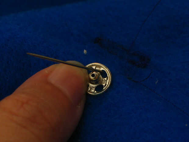 Usando una aguja e hilo, mano coser la parte masculina de la presión por debajo del agujero de botón (imagen 3).