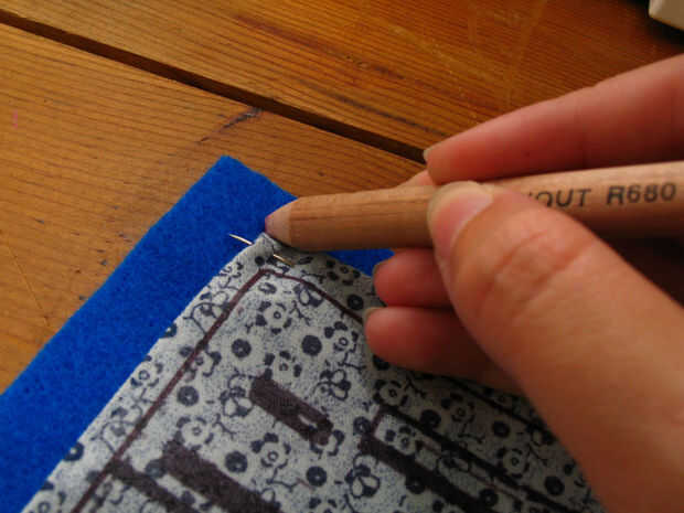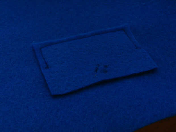 Si usted está planeando en hacer la almohada Buonas noches y está utilizando coser velcro (recomiendo esto sobre velcro pegajoso) ahora es el momento de coser el velcrow detrás del fieltro (ver colocación de velcro en el paso 16 para referencia)