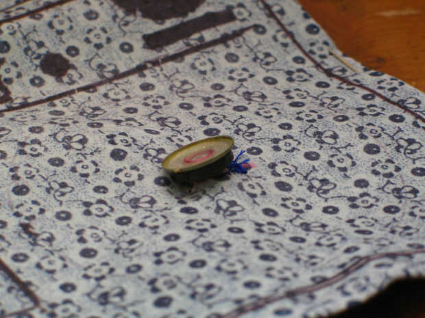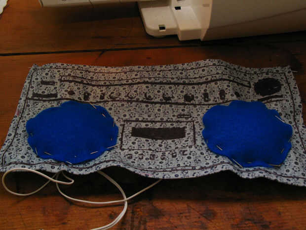 Teniendo cuidado de no coser sobre los cables, zig-zag puntada de los altavoces en su sitio (imagen 4)