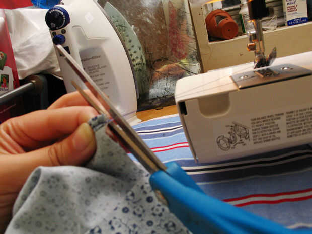 Al iniciar y terminar la costura, pespunte siempre para asegurar el hilo. Luego tire del hilo algunas pulgadas hacia fuera y corte a la tela como sea posible. Esto ayuda a por 2 razones. Uno, no tienes que poner en orden el hilo suelto más adelante y dos, la aguja de máquina de coser no vendrá sin rosca próxima vez que utilice la máquina (se me olvida hacer este camino a menudo!) (imagen 1)