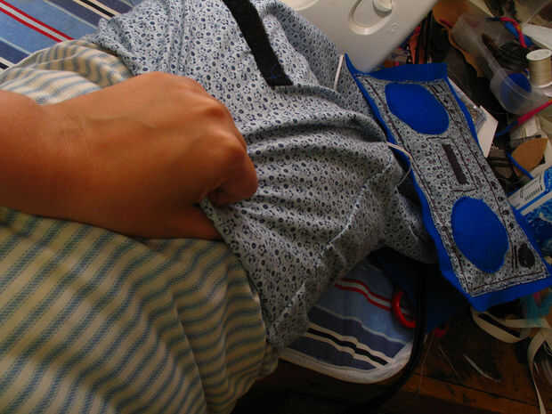 Poner la almohada en el funda de almohada, conecte la caja de auge y alimentar el alambre a través de la serie de ojales (imagen 3)
