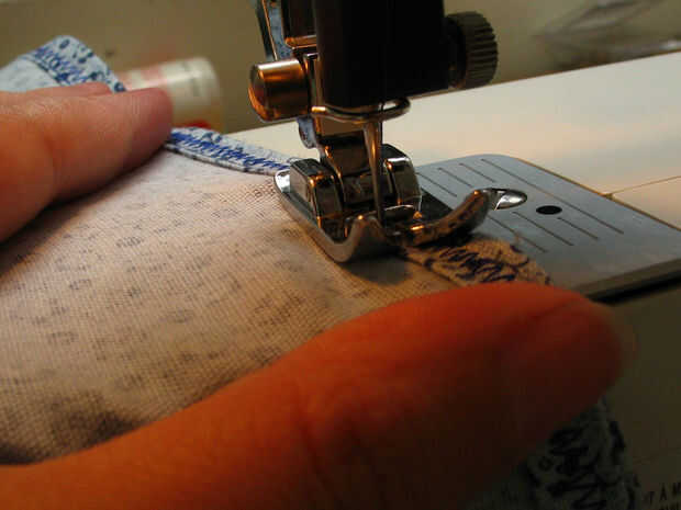 Para fuerza primer zig-zag de la puntada, la puntada recta la parte superior y parte inferior dobladillos juntos (imagen 1)