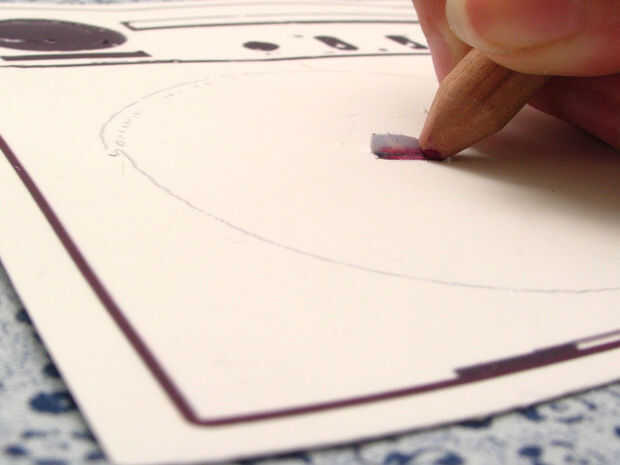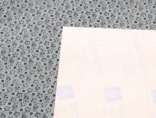 El traslado hasta las marcas de tiza con la transferencia hacia arriba de la línea. Marcar suavemente la transferencia donde van los agujeros de botón de altavoz. Levante el papel anotado y marcar con tiza de sastre. (imagen 3)