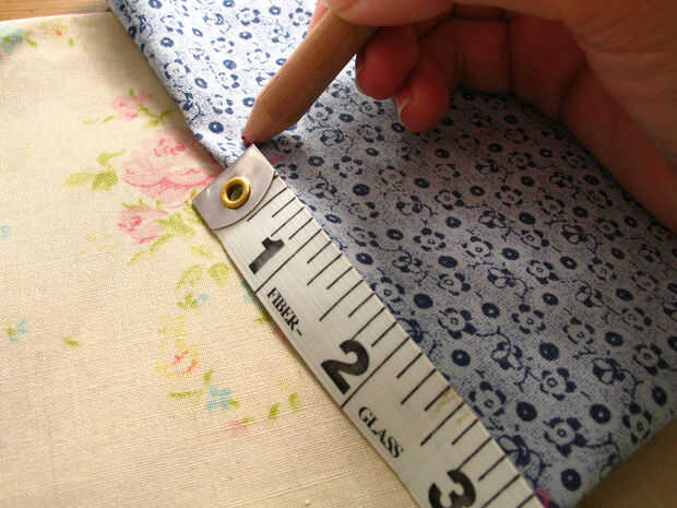 Doble la tela en cuartos y marcar la mitad de la medida.