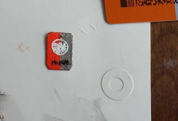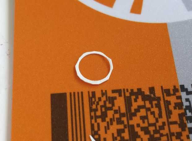 Podría no para la vida de mí averiguar cómo hacer un círculo de este tamaño. Finalmente me llamó la atención una idea de la planbook instructable hice: pegatinas de refuerzo del agujero! Pensé en usar como plantilla, pero eso simplemente no funciona. Así que por el contrario, había recortado hasta anillos muy, muy pequeños y había pegado todo directamente en la placa sí mismo. Círculo!