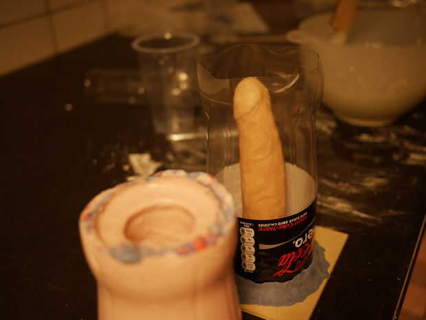 En este caso hemos proporcionamos el objeto con una buena base, pegar el objeto en una pieza de madera con pegamento caliente y utiliza una botella vacía como un recipiente para verter el alginato. Asegúrese de que la botella está bien sellada la madera.