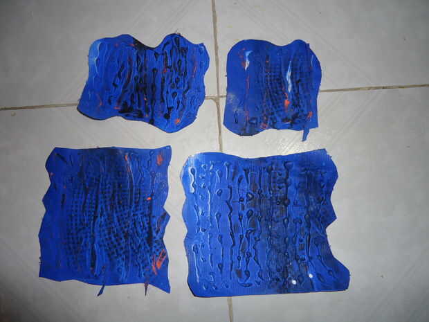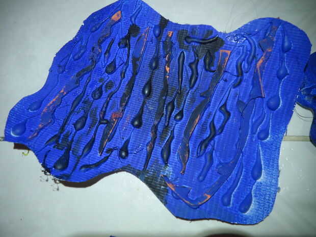 Cortar la lámina de plástico en óvalos, o en otra forma por lo que se les puede adjuntar a cada parte del cuerpo donde tiene mística escala, luego poner la forma plástica sobre una superficie plana.
