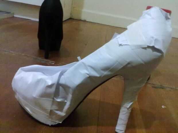 Se ve muy cool ya está cubierta. Te juro que Lady Gaga o algunos otros setter tendencia pronto comenzará a usar zapatos cubiertos de papel ;)