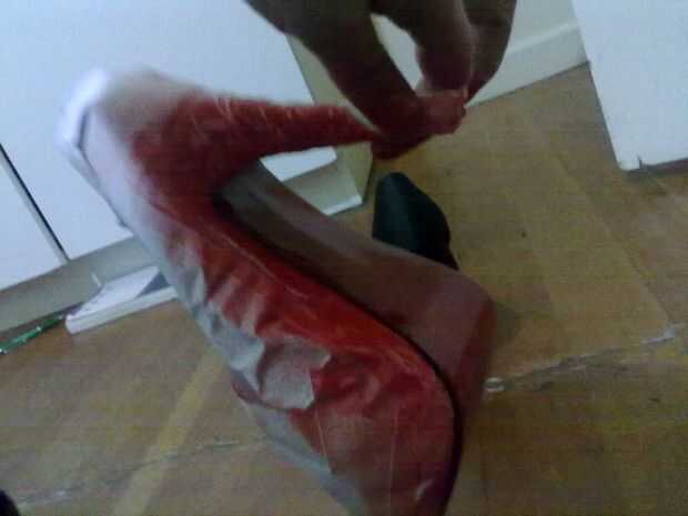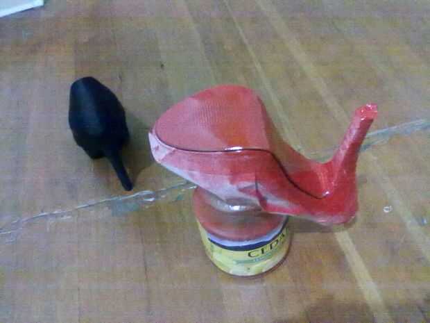 Hice la primera capa manteniendo el zapato... no una buena idea.