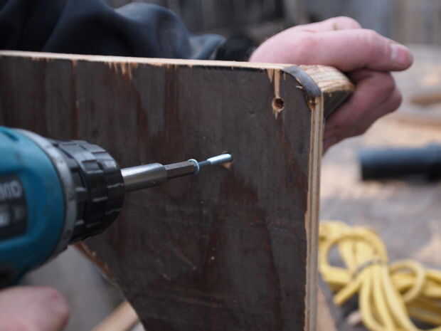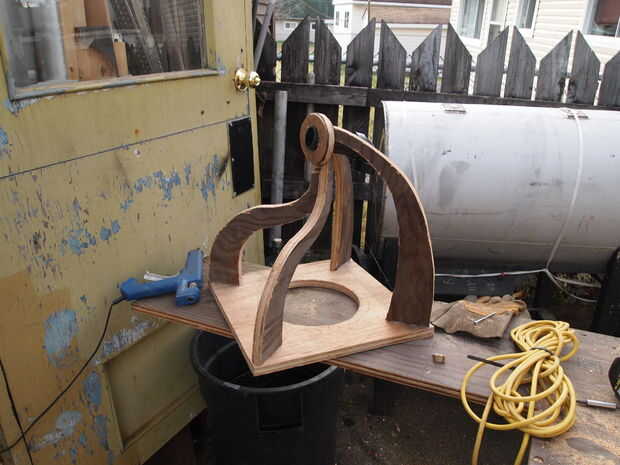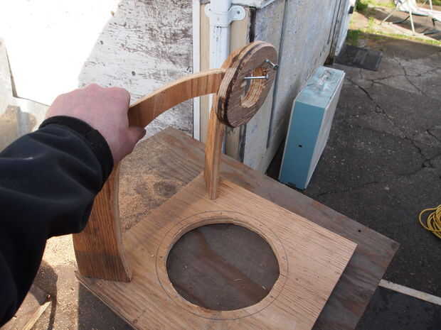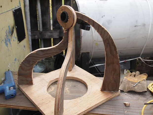 1. Cortar un disco de madera contrachapada de 2 pulgadas más anchos que el diámetro externo de su puerto