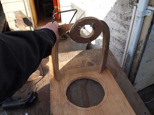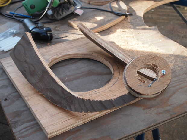 2. Cortar un círculo más pequeño en el disco de madera contrachapada sólo lo suficientemente ancho como para apretar apenas en su puerto, que desea ser realmente, realmente bien.