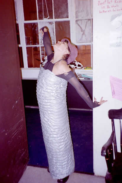 hice este vestido en mi clase de diseño de moda. ¡ Muy fácil!Todo lo que tenía que hacer era hacer un tubo básico vestido fuera de un cuadrado de 6 x 6 pulgadas de jersey azul matterial. [La mano cosida]Después de hacer este vestido de tubo, entonces