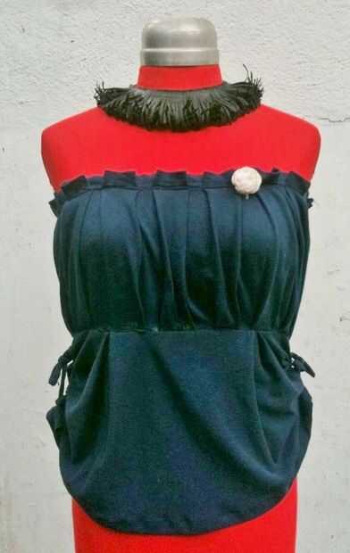 una vieja camiseta y un pañuelo nuevo infinito.Materiales1 camiseta XL blanca2 tazas de café molido4 tazas de agua2 cucharadas vinagre1. cortar la camiseta debajo de la axila derecha por encima de la costura parte inferior.2. en una olla grande poner