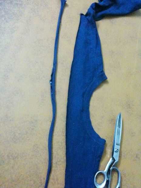Cortar un cable cortado de las piezas extras de camiseta que le queda todo.