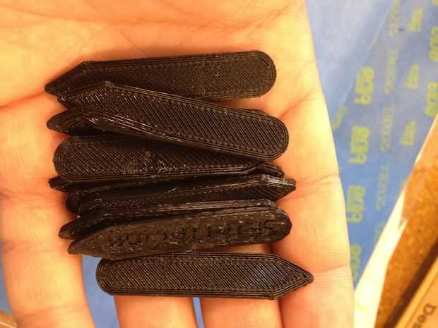 los productos finales fácilmente salieron de la plataforma de la construcción mediante el uso de un raspador de pintura. algunas de las estancias de cuello iniciadas a la vida de la plataforma de impresión mientras que en general alrededor del 60% de estas piezas impresas 10 a la vez salieron casi a la perfección. La resolución de texto podría mejorarse con una ligera mejora en la configuración de impresión y un tiempo de impresión de 30% adicional.