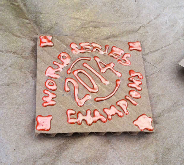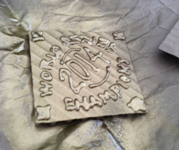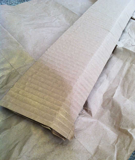 Pintura de aerosol el lado liso de la pieza de cabeza de cartón con pintura de oro. Lo mismo para el centro diamante de 3 1/2 "x 3 1/2".