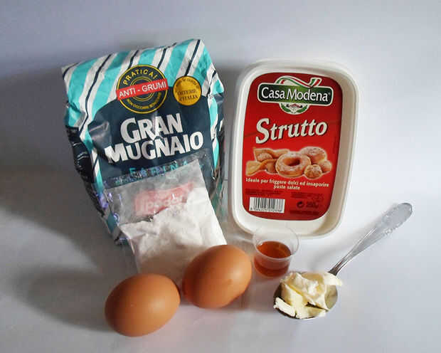 Esta es una dosis de 2 huevos. No cuento cuantas sfrappole resultó, pero puedo decirles que todos los que se ven en los dos primeros cuadros de paso 8 son los que hice con esta cantidad: