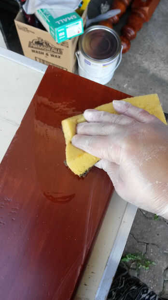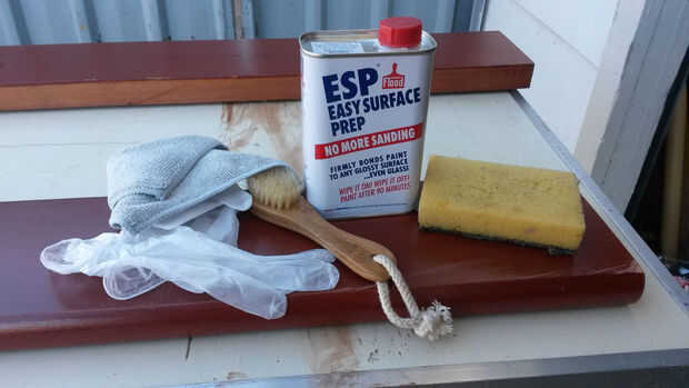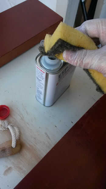 He decidido al comienzo de este proyecto que no quería pasar una gran cantidad de tiempo lijar nuevamente la gruesa capa de barniz que cubrió todas las piezas. Aunque me hubiera encantado exponer la madera cruda por debajo, no sólo hubiera mucho tiempo pero también... ¿que estoy bromeando? Mucho tiempo es una razón suficiente. Es donde me encontré con inundación ESP - fácil preparación de pintura de la superficie. ESP es un paño en el líquido que se adhiere firmemente a superficies porosas brillantes, no como; azulejos, plástico, esmalte, cerámica, acero inoxidable etc. Prepara las superficies lisas y resbaladizas que están listas para la pintura o barniz, al mismo tiempo eliminando la necesidad de lijar.