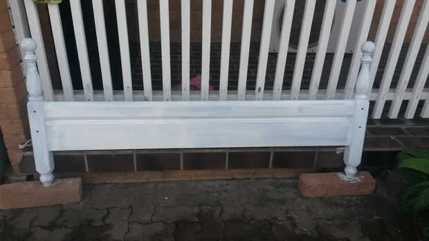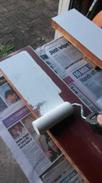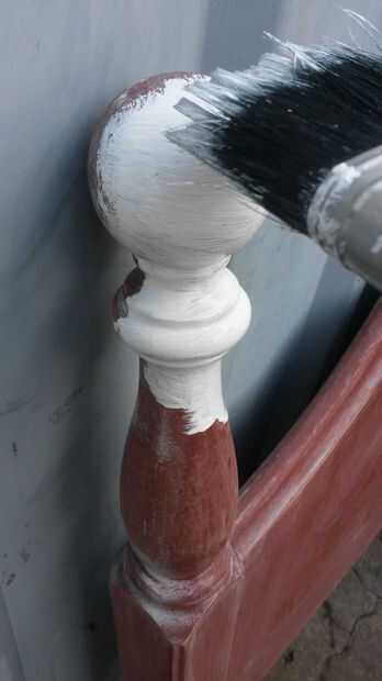 Con un pincel de detalle redondo pinté todas las curvas y los bordes del marco. Luego siguió adelante y utiliza mi rodillo espuma mini para pintar las superficies planas. Tenga en cuenta que la mitad de la pintura será raspada y enarenada apagado, por lo que su aplicación no necesita ser perfecto. Trata de la única vez que un 'trabajo de rush' trabaja en su favor.