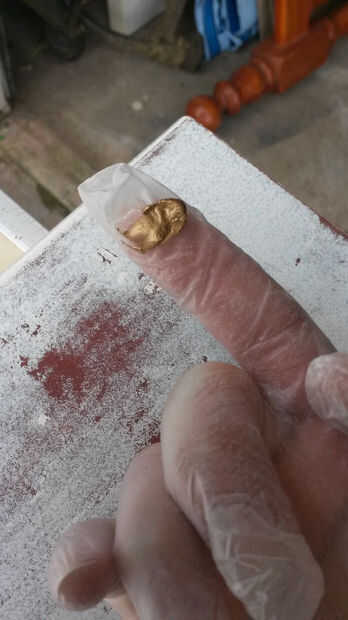 Nota: no importa quién te dice que Amaco Rub'n'Buff es bastante fácil bajar las manos, están mintiendo. Si no quieres ser lavado lejos en sus manos o sumergiéndolas en turps mineral para la próxima media hora, usar guantes.