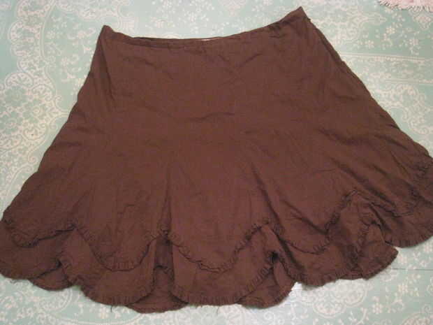 Esta falda era un estilo Old Navy comprados en una tienda y modificar en una hora. Adorno toma un poco más de tiempo. Los volantes en la parte inferior de la falda están cosidos con tela que fue rasgada y se reunieron en lugar de dobladillo para que quede bien con el estilo shabby.