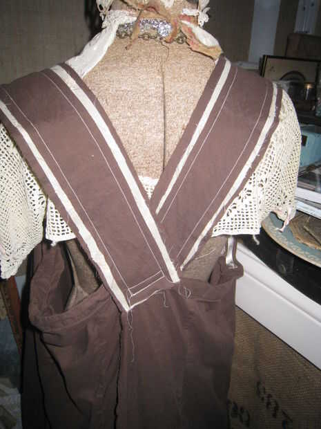 3. para sujetar las correas a coserlas en la parte superior delantera de la falda. Ahora tome los back-ends y entrecruzamiento, coser la correa derecha a la parte posterior izquierda maíz de la falda y la correa de la izquierda a la esquina derecha trasera de la falda. Esto cruza los bordes posteriores de la falda que se cortó por el centro para formar superpuestas detrás del delantal.
