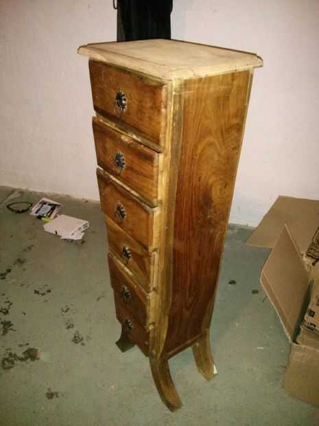 En primer lugar, necesita una pieza sólida de madera de los muebles, la que se muestra es pino macizo que salvó de una yarda de reciclaje por £25. Preste especial atención a revisar los cajones y las articulaciones como puede ser un trabajo más grand
