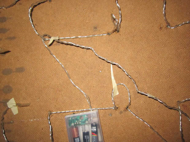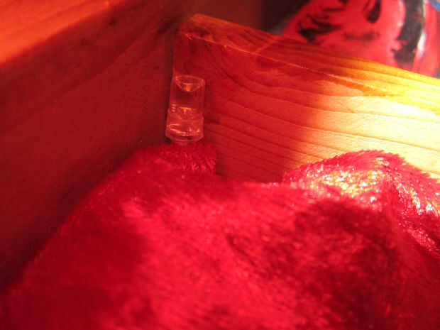 Encontré una cadena barata de luces LED en la tienda de dólar y empujó cada luz por un agujero en la esquina de cada compartimento. Entonces lugar simplemente los cables en la parte inferior con cinta y la batería con Velcro, lo que permite retiro fácil. Esto terminó siendo muy desordenado como me vi obligado a alargar algunos de los cables simplemente girando junto con cable de altavoz y cinta adhesiva de la Unión. Es probable que se vuelva y limpiar en algún momento con mi soldador.