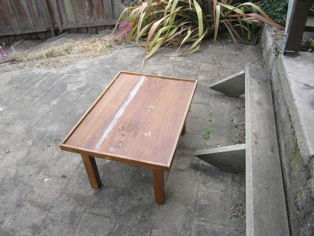 Antes de empezar hay algunas cosas que se requiere. El componente principal del proyecto es, obviamente, la tabla. Ahora usted puede construir su propia mesa si lo prefiere, sin embargo, para este proyecto simplemente fui a mi tienda local de op y encontrar una mesa adecuada, se tiñó de un color algo horrible, tenía una herida grande a través del medio, y decidí que era bastante bueno para el precio barato (como $7). Una mesa con un poco de un labio alrededor del borde es preferible, como pretendemos poner vidrio en la parte superior.