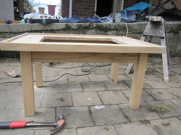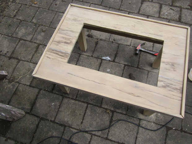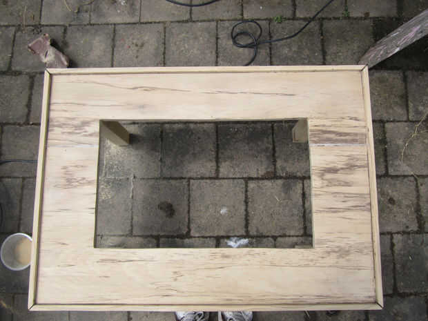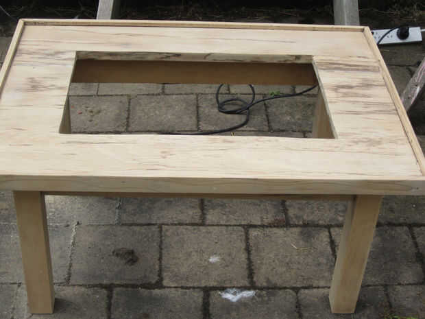 Lo siguiente que hice fue arena de la horrible mancha que estaba originalmente en la madera, revelando la madera que fue realmente muy agradable (si ligeramente atenuado).