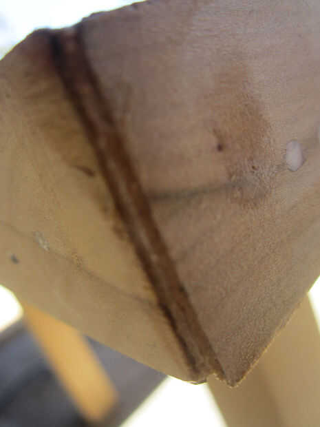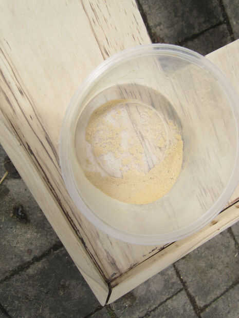 A continuación quiere sellar el los bordes, algunos hardware tiendas serán color coincide con un sellante a la madera, sin embargo he encontrado que si se mezclan algunos de lo abajo madera, polvo de lijado, con algunos aquadhere, crea un buen sellador que coincide con el color de su mesa. Las astillas de madera de la mesa es una buena fuente de los chips necesitada.