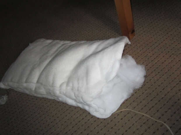 Hay un par de maneras de hacer esto, pero lo más fácil es simplemente cortar un rectángulo de material, doble de ancho y dos veces tan largo como cada compartimiento de la caja. Luego colocar un relleno en el material y doblar en forma de almohada.