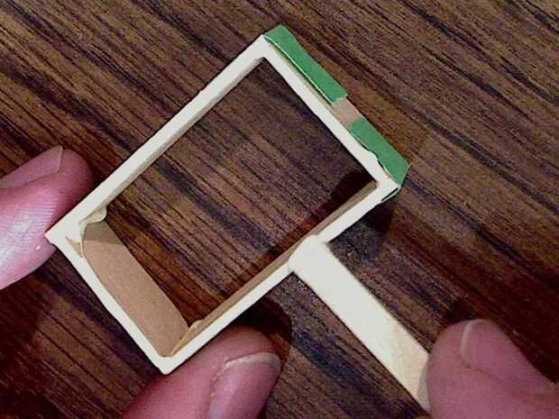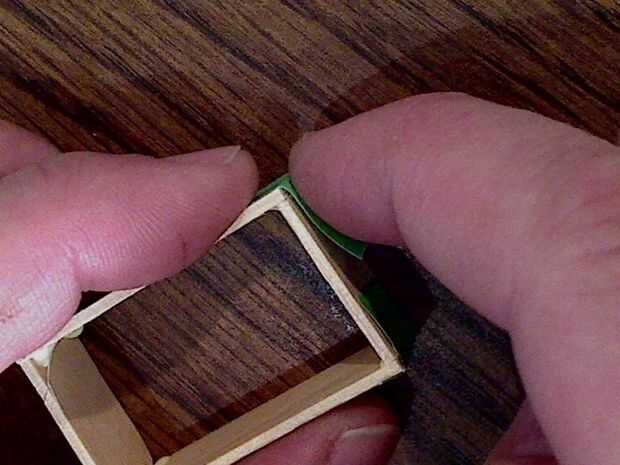 A continuación, Aplique pegamento en los bordes posteriores de la caja (ver la primera forma). Si es un poco grande, está bien. Cola hacia abajo y cinta para sostener hasta que se seque todo.