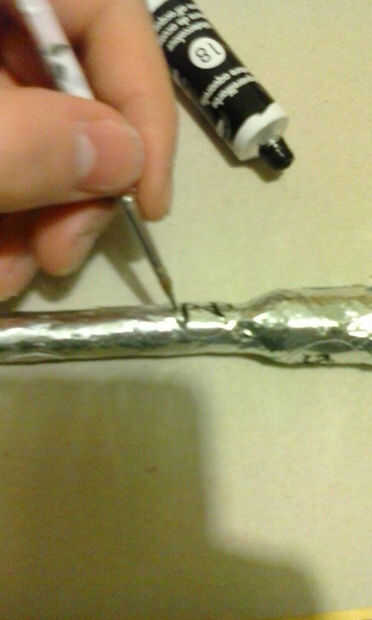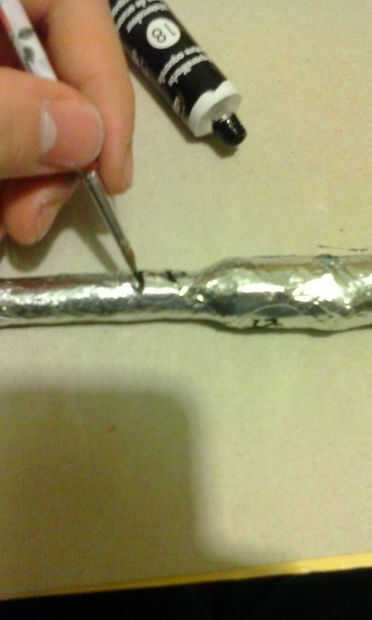 Con un poco de acrílico negro pintar traza el contorno o, pintar el diseño de toda runa en su estela...