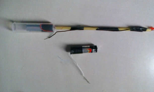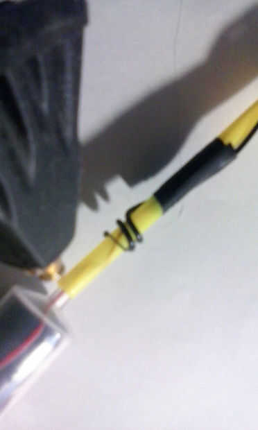 Luego asegure el otro cable al otro lado del LED y el cable de "switch" en la parte inferior del segundo alambre como se muestra arriba.