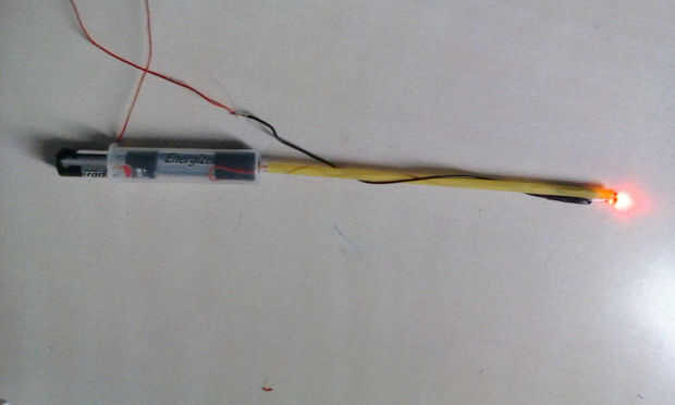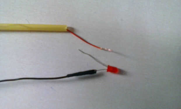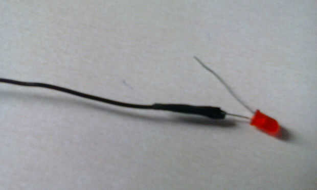 Cortar la pajita y conecte el lado adecuado del LED con el cable que sale de él, seguro permanentemente.