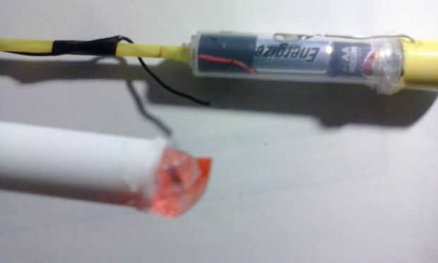 El pegamento caliente se derrite cuando se calienta, algo probavly quiere evitar el momento utilizas tu estela, que es la razón por qué usted tiene que cortar más corto la pajita que te tubo de PVC... para evitar que el pegamento de fusión cuando se sobrecalienta por el LED.