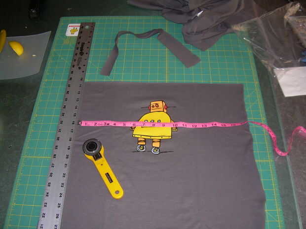 Medir la parte de atrás y cortar su apoyo camiseta para adaptarse.