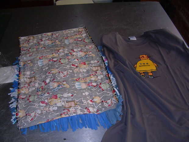 Llenar la brecha entre sus tiras de camiseta anterior y el respaldo que más tiras de camiseta. Los corté de mi forro camiseta para ayudar a mezclar en un poco mejor, pero ciertamente puede seguir con sus colores originales.