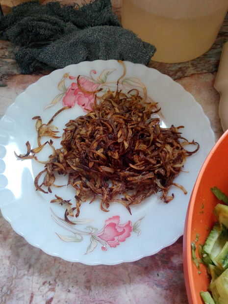 3 cebollas rebanan, frito (con crudo garam masala) y luego puré