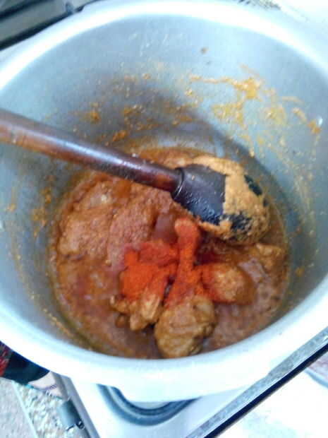 La palabra "korma" se deriva de Urdu ḳormā o ḳormah, significando "estofar", derivado a su vez kavurma turco significa literalmente "carne cocida", Korma (قورمه o azid en persa) tiene sus raíces en la cocina de Mughlai del mo