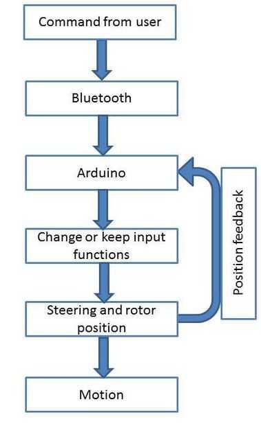 Un simple código de Arduino Lee de por cable serie (o bluetooth) y cambia las variables respectivamente.