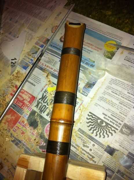 Después de la laca de fijación generosamente con laca urushi sobre todo la parte de la raíz y el agujero, y muy ligeramente en el utaguchi, luego laca los enlaces, así